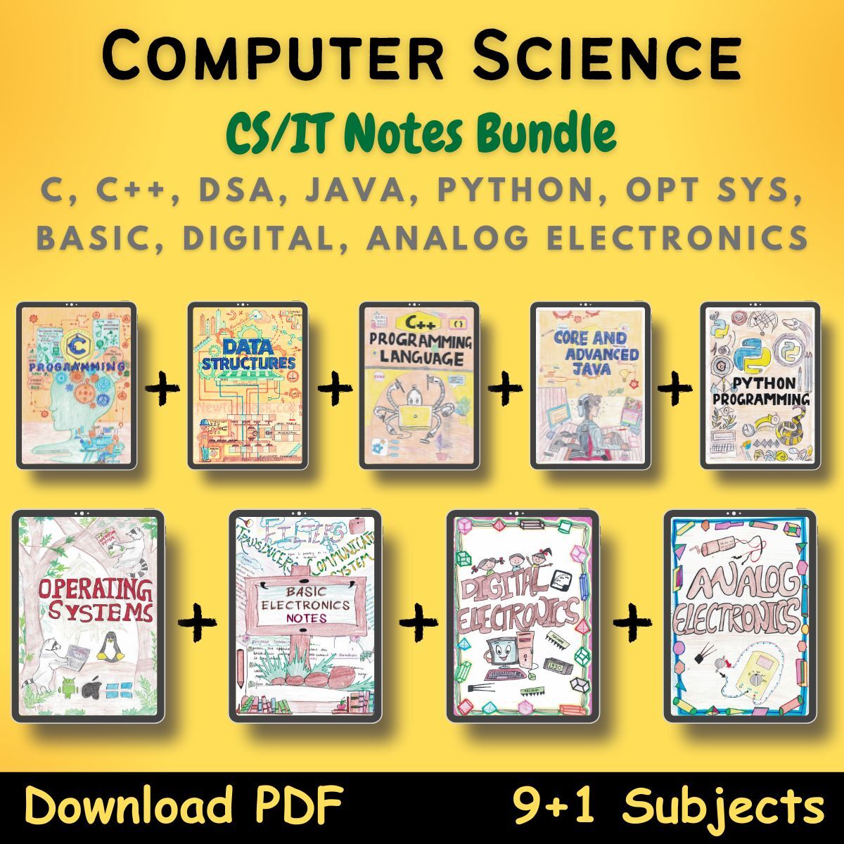 Beautifully handwritten, concise, and easy to follow Comprehensive guide for CPP C, C++ programming and Data structures algorithms (DSA), Java, and Python, Digital and Analog electronics. Its Absolutely incredible notes to use for reviewing concepts, everything in depth.