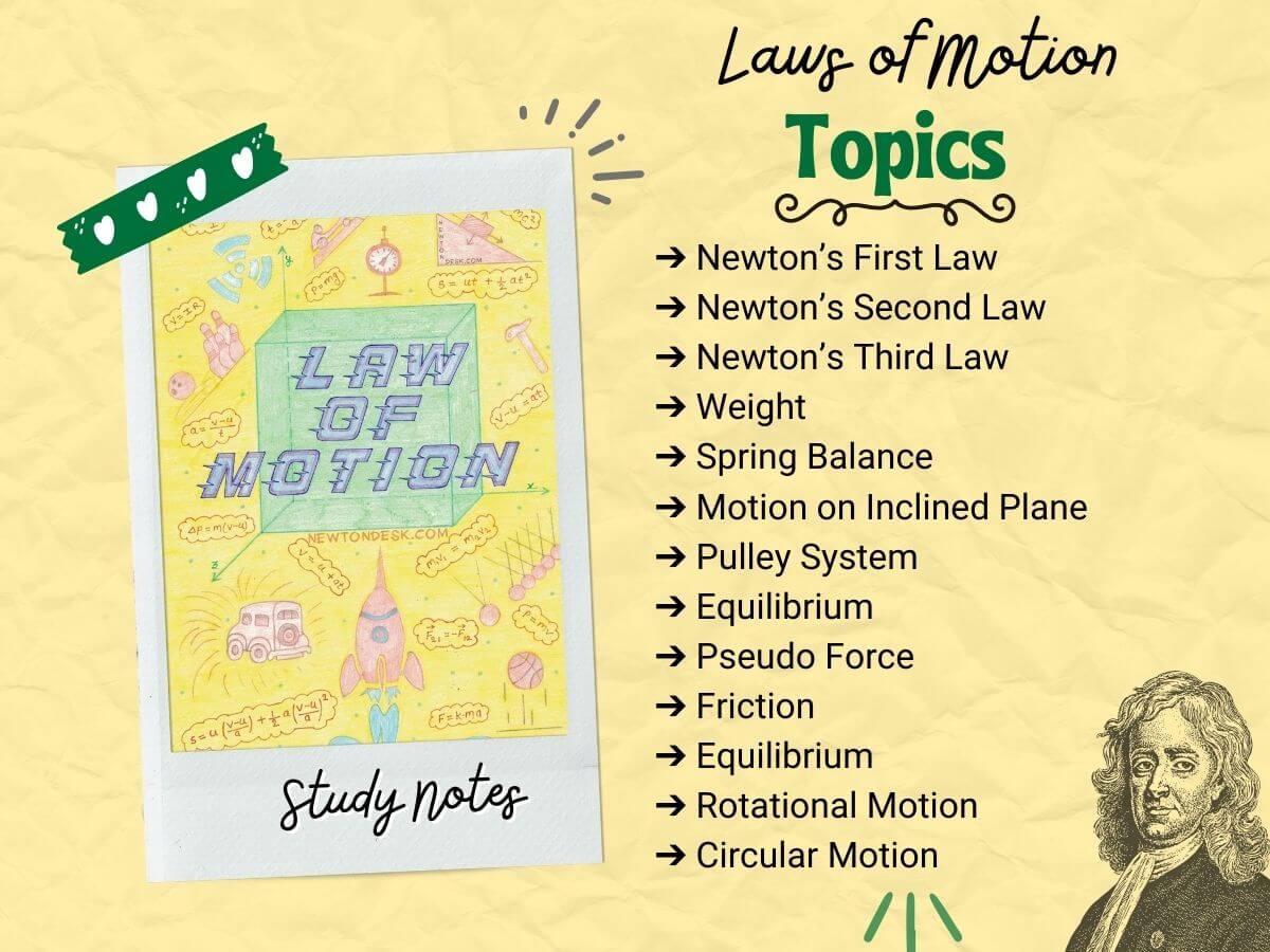 Topics Include in Laws of Motion Notes PDF: