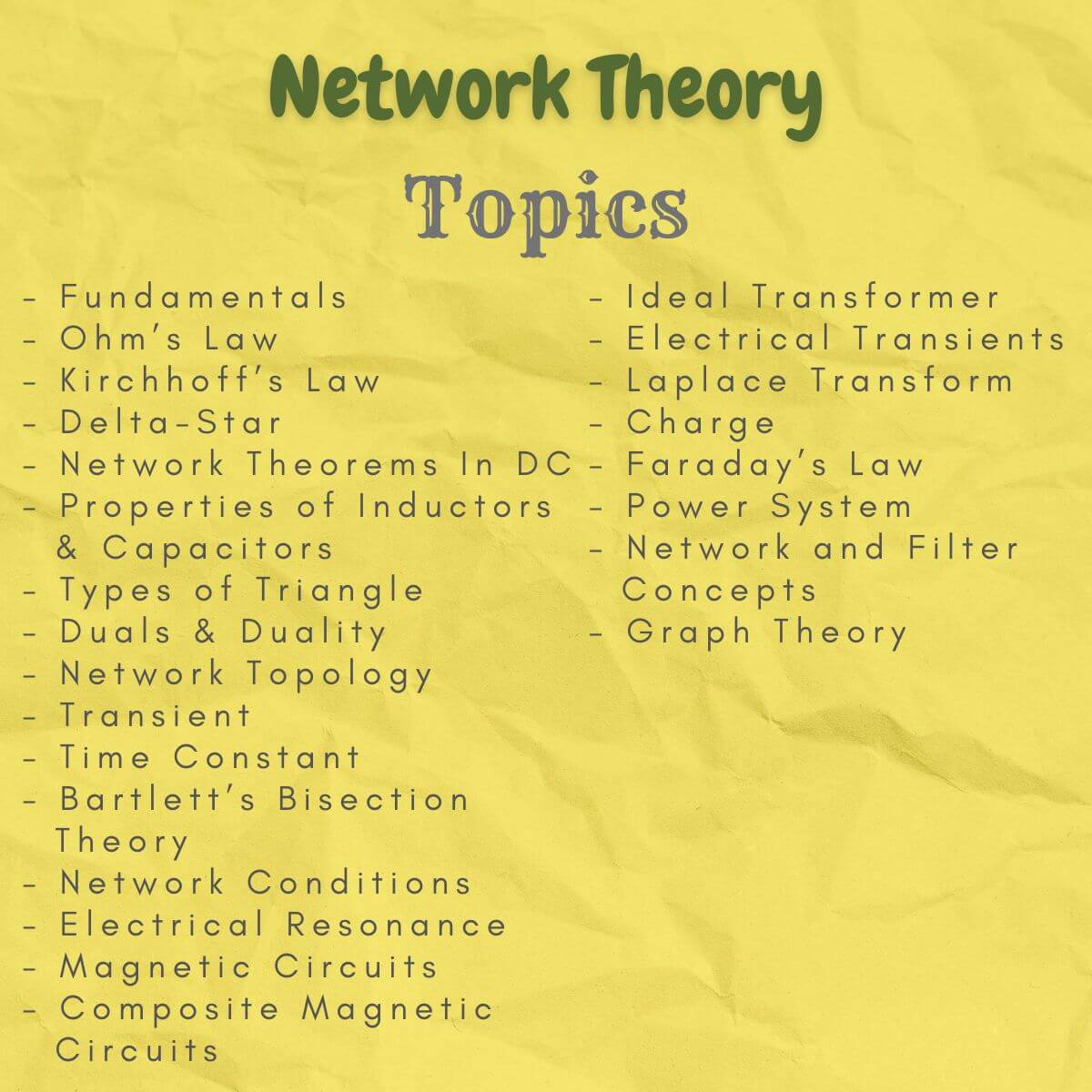 Topics Include in Network Theory Handwritten Notes PDF: