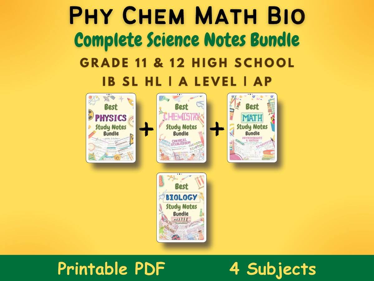 Explore the world of complete physics chemistry math and biology with our comprehensive study notes tailored for UK and USA students. With our study materials or resources, you’ll get clarity in AP Physics 1 2 & c, IB, and access formula sheets to power up your understanding of physics chem math bio equations and definitions.