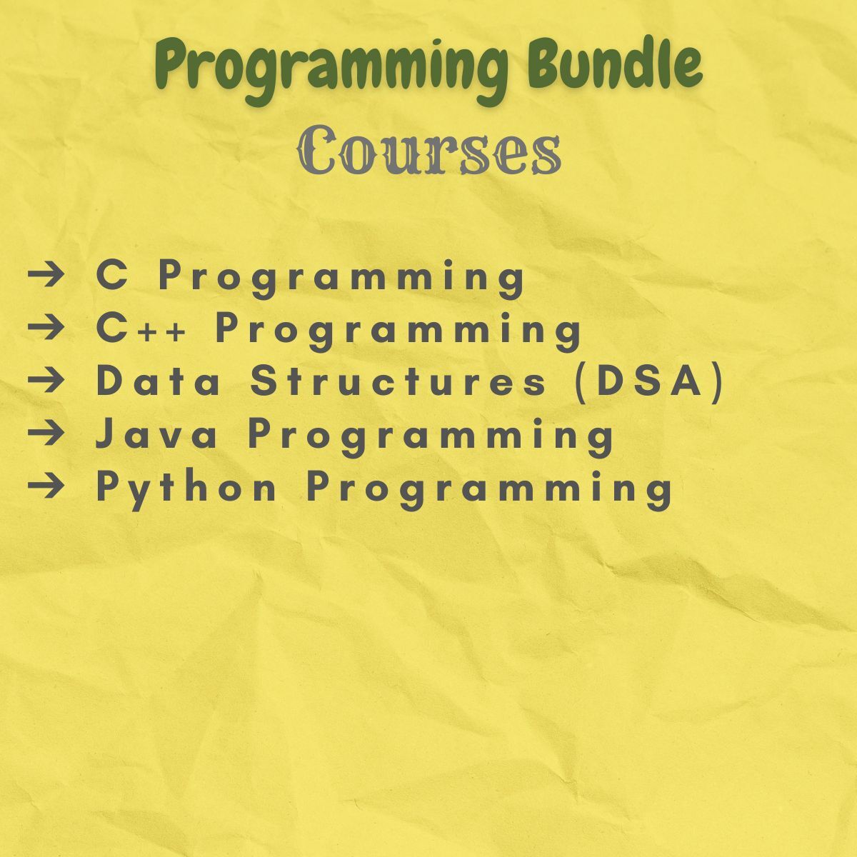 Courses Included: C Programming | C++ Programming | DSA | JAVA | Python